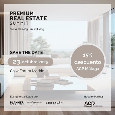ACP Málaga será Industry Partner de Premium Real Estate Summit, evento que el próximo 23 de octubre reunirá en CaixaForum Madrid a los protagonistas que lideran el mercado del lujo residencial para analizar los pilares que están redefiniendo el sector: branded living, inversión y valoración ultra-premium, rehabilitación histórica, innovación en diseño y arquitectura, bienestar integral y el perfil global de compradores de lujo.